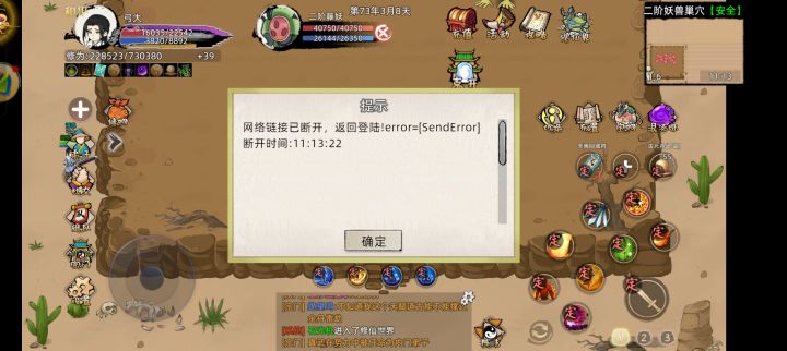 二阶妖兽巢穴多打一会就显示断网,一次就是我网的问题,连续3天都这样就是bug了。开服三天没拿到材料,我炸了。赶紧修了