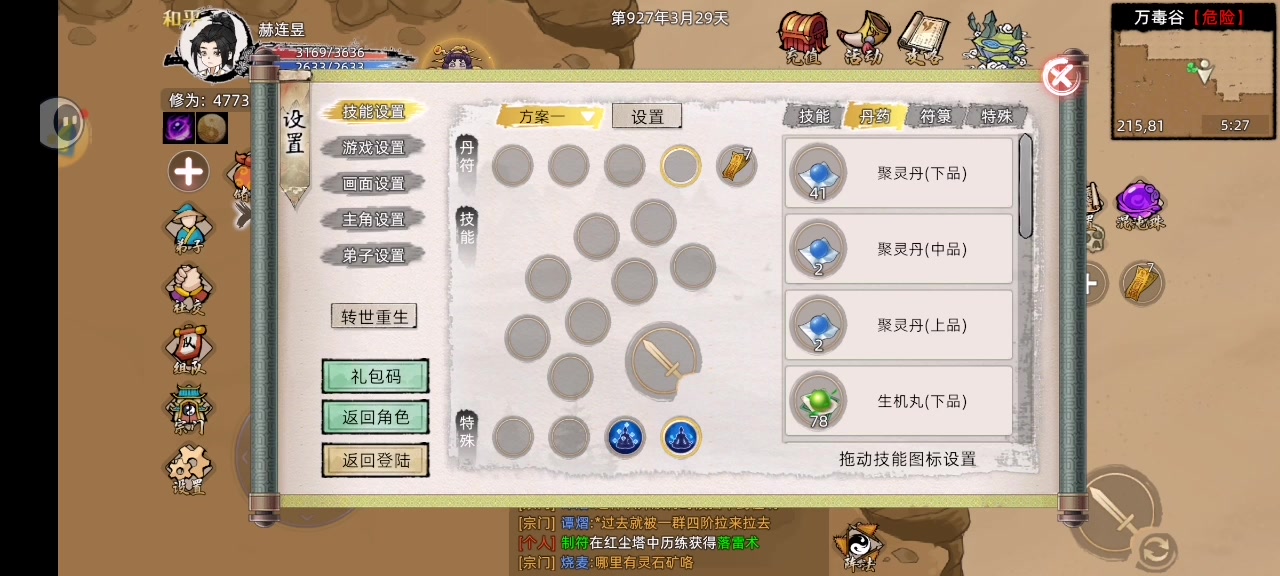 打通天时还好,退出就不吃药了同时放技能不了,重进游戏过。