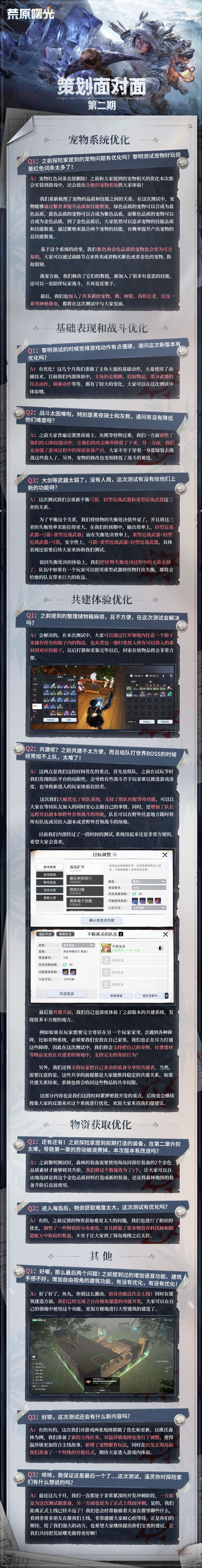 各位探险家们好!!让大家久等啦~经过这几个月的准备,我们对游戏做了超多优化、准备了很多新的内容!终终终终于马上要和大家见面啦!!!锵锵,鱼丸今天拉来了策划溪灵为各位探险家进行近段时间的工作汇报,内容包含本次测试优化和新增内容。话不多说,我们直接开始吧d(・`ω´・d*)由于篇幅问题,本次策划面对面暂时结束啦~探险家们对哪个优化和新内容最感兴趣呢?快来评论区分享一下!后续鱼丸也会给探险