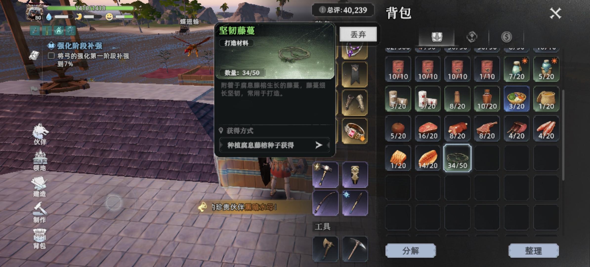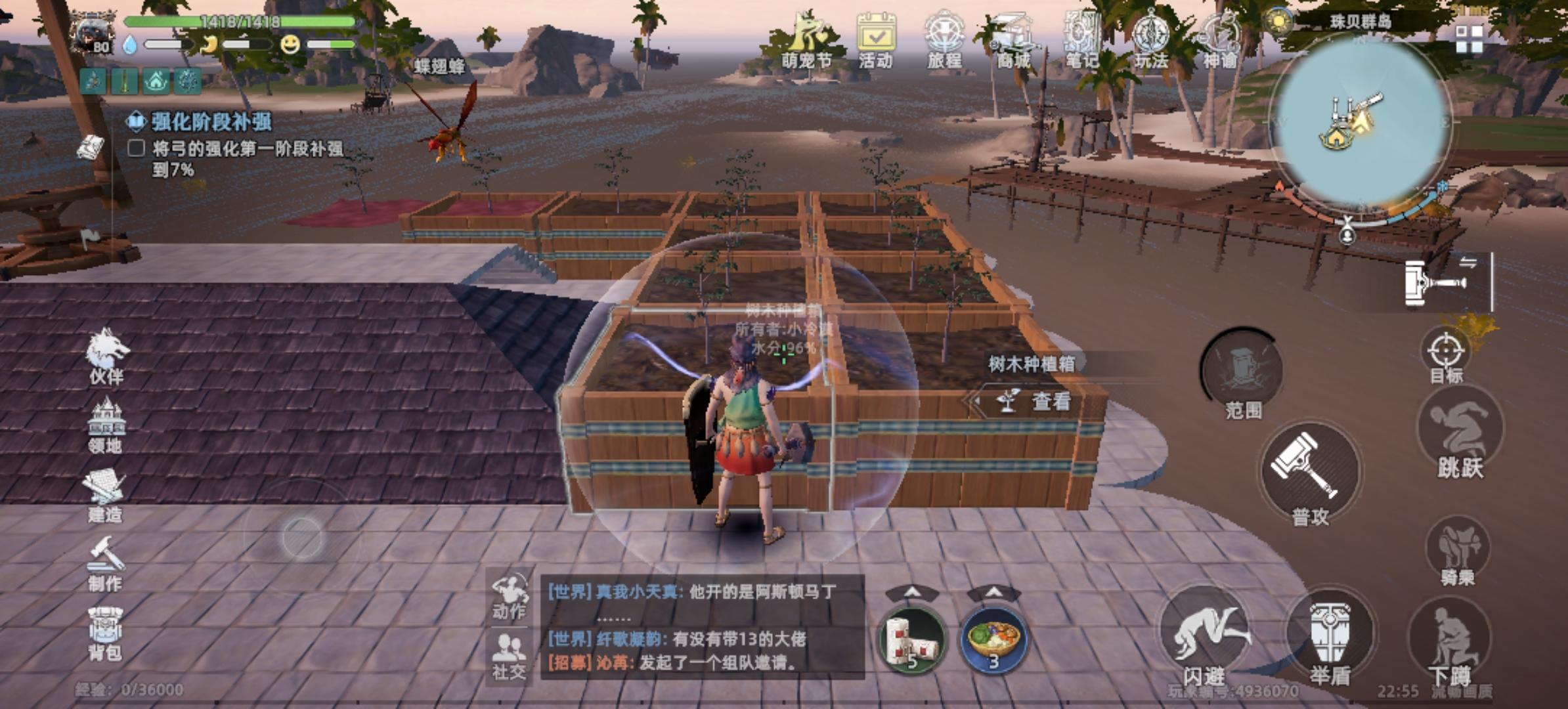 队伍:1.希望可以提供队长卡拉取队员单自己身边的功能,而不是所有队员要跑图。2.希望可以提供队员主动跟随队长功能。种植:希望完美种植可以返还树木种子。提高火龙果和野外树种获得的倍率。taptap签到:希望游戏提供月度签到领取福利物品功能。快捷物品:1.聊天栏右侧的快捷物品展示窗口建议增加为4个,一个方便用户设置喝水物品,1个是方便用户设置料理,1个是方便设置用户常用工具,1个是方