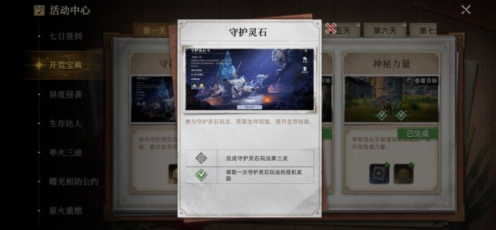 开了一个小号,在前面就打了守护灵石到第12关,今天第四天的开荒活动里面还在让我打通第三关。这种怎么搞,现在都已经打过20关了这个任务还是完成不了