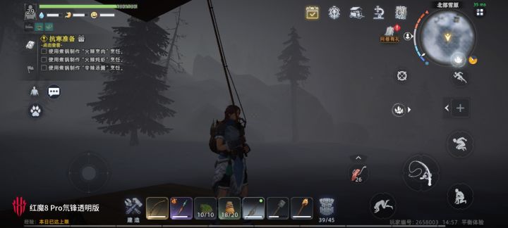 玩家编号:2077003区域:雪山,冰原去雪山要多带火把,驱寒,也要多带点木头,找找别人放的火堆添木头生火回血,还有在北部雪原里有山羊可以抓,山羊被封在冰块里,可以用火把融冰丢球抓