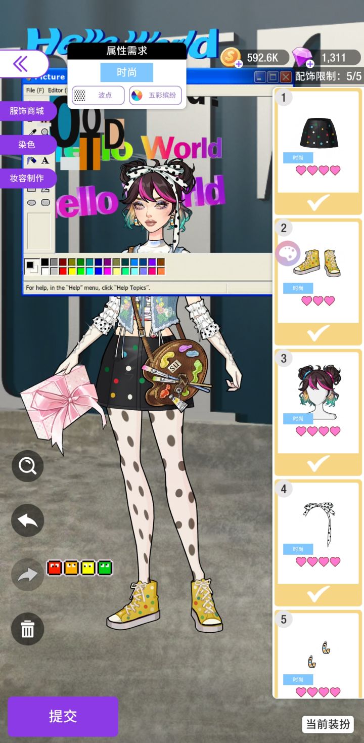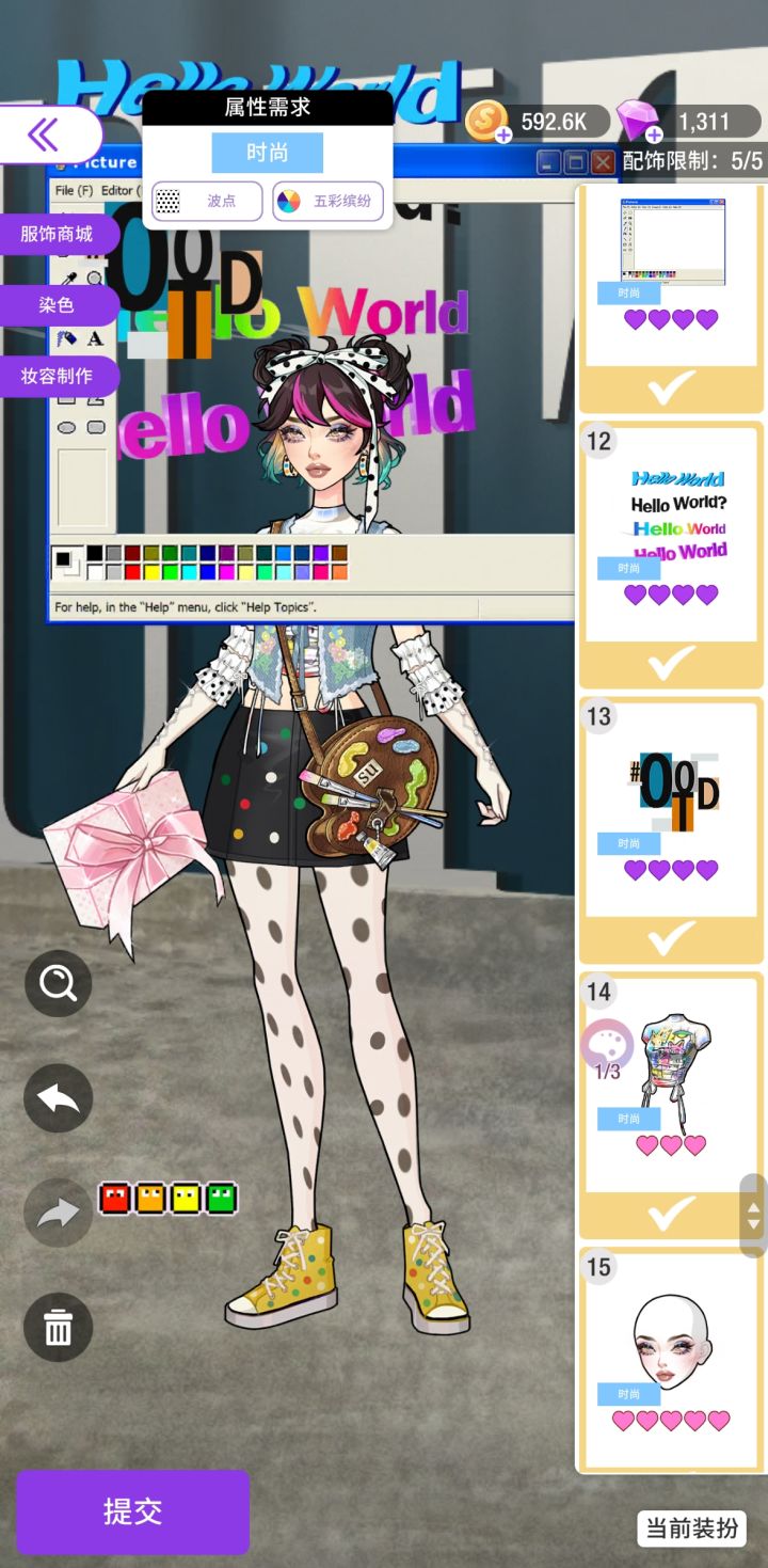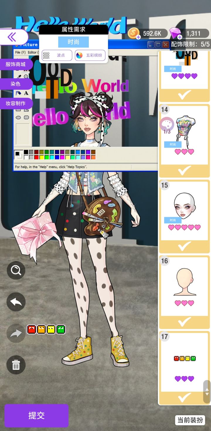 尽量用活动送的免费衣服/可制作的衣服搭的。