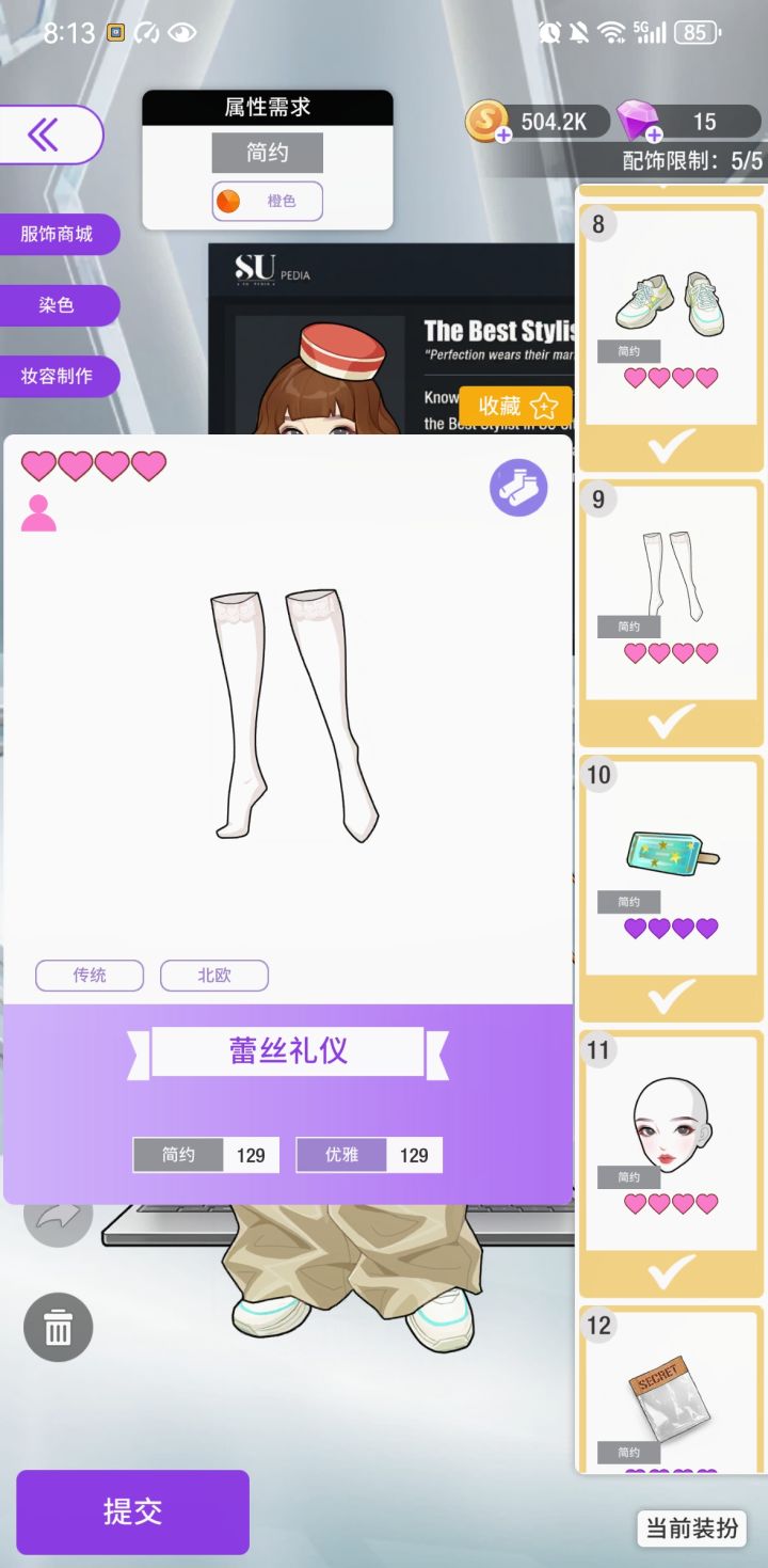 大概是平价攻略?①总共14件配饰衣服+1个表情+1个肤色(肤色随意),如图1、图2、图3所示②白袜子是“蕾丝礼仪”,详情看图4。