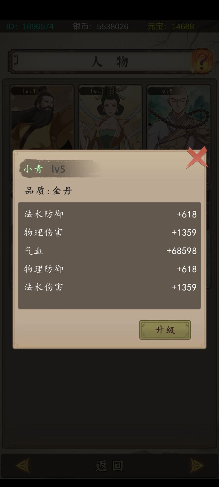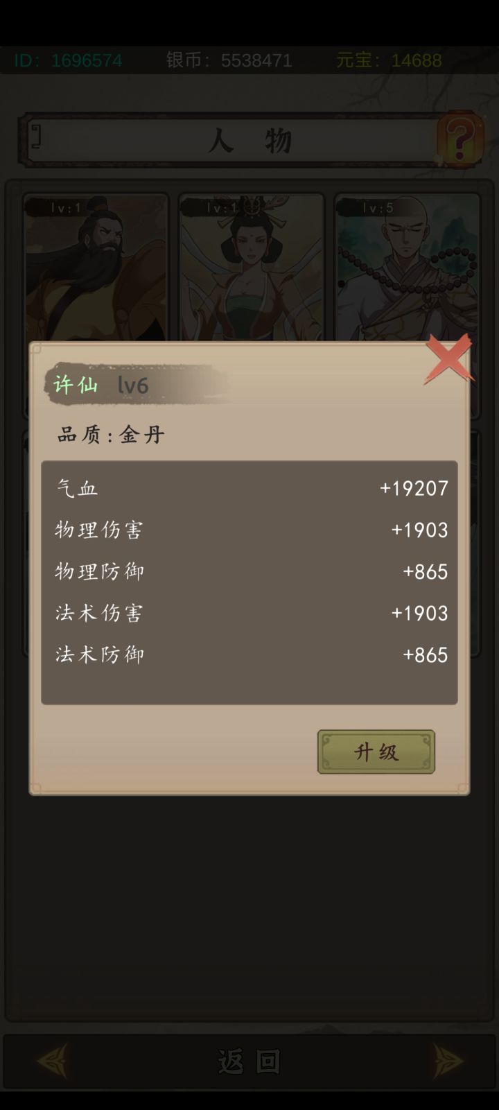 五级人物加6.8万血,升到6级只加1.9万