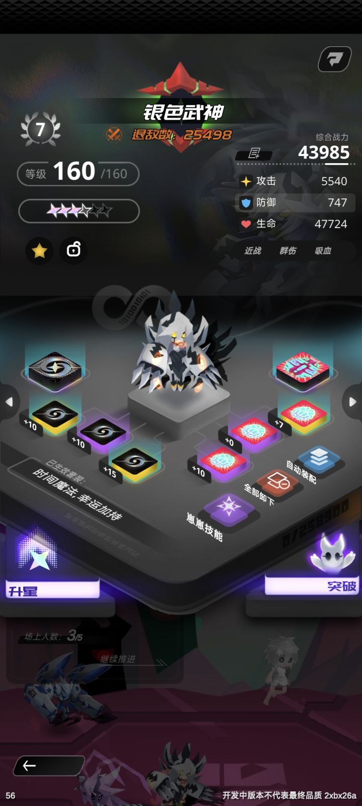 1.目前测试只要主养一个崽崽就好了,推荐疾风等级突破都拉满,最好能四星能加攻速,技能能升就升,优先级在突破后,其他崽崽暂时不用不管。2.黄星,不要乱用后面严重不够夹蛋仁者见仁,智者见智吧,最好不要用黄心一直刷。突破材料本每天打满每天还能买6次,技能本看情况。3.主线前期正常打后面,天赋优先点出时停其余根据需要点。(小技巧目前,不仅能拖动自己的崽崽,其实还能拖动对面的小怪和boss,我靠这招随