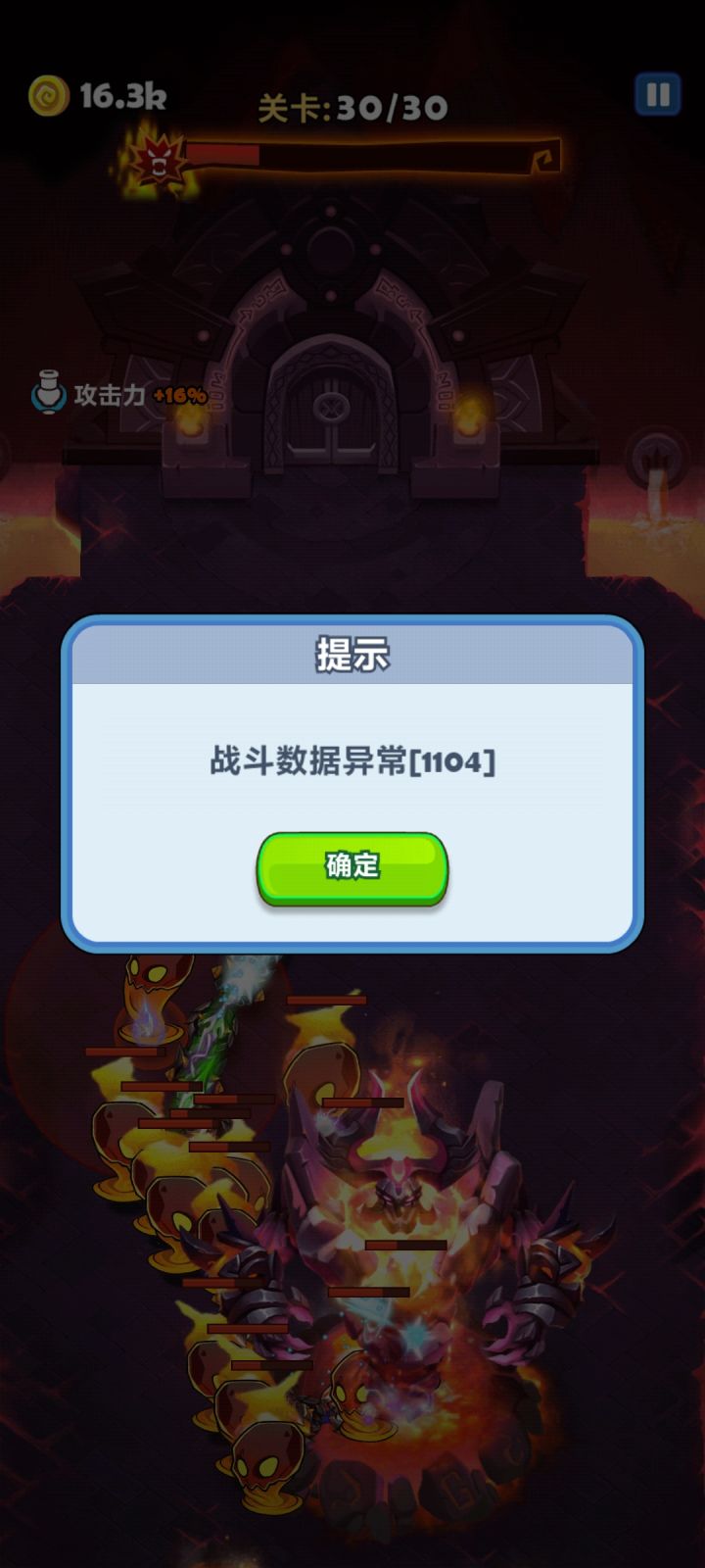 一天了,这第16关,一直在战斗数据异常1104,关掉wifi也没行,我玩的TAPTAP平台的。官方群里也没有人管,要怎么办啊。也卸载重新安装过了,就是不行。#贪吃蛇无尽大作战