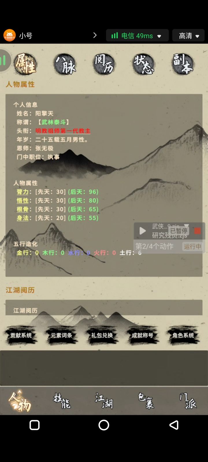 12:00-13:00,飞到古墓,可以挖宝,点一次自动化,可以过得钱袋子,冲脉丹20:00-21:00,在扬州西大街武道场,点人物,武道交流,也是自动挂机人物——副本,有个挖矿,不需要战斗,直接去挖,每天刷新