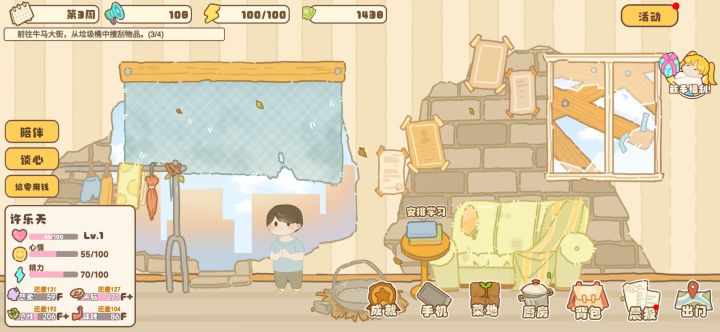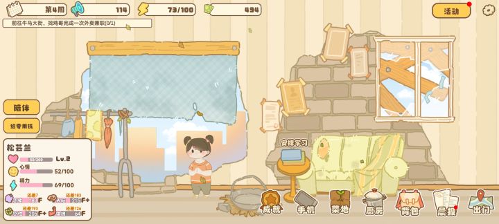 游戏行动力找不到恢复渠道,根本不够用,每天都要计算好,最好不要打工,可以做菜卖钱#游戏推荐 #百亿家族攻略