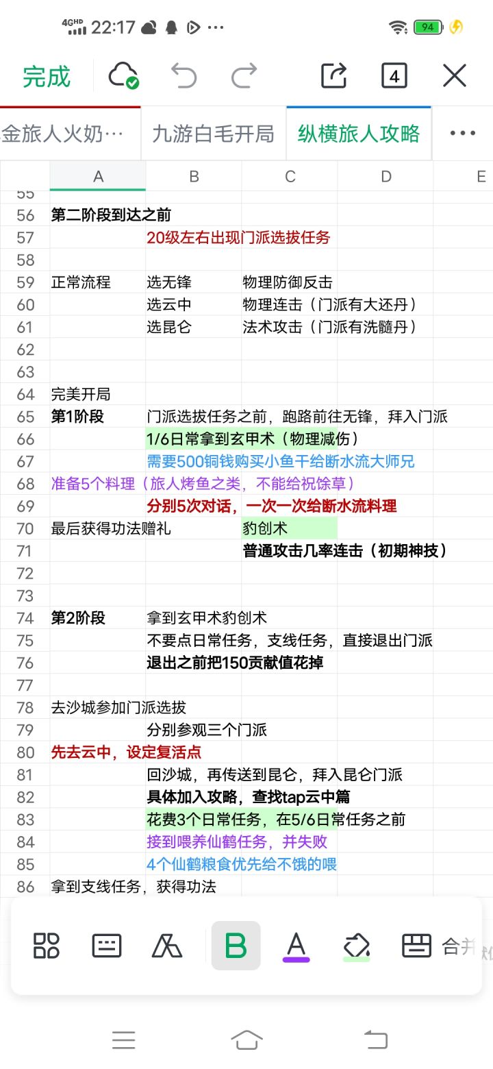 大号云中开局,历经2个多月,还有十来天就能买到云中怒气书毕业了。这个是达克号,开始并没有完美开局,只是古板的物理物理辅助法师的门派流程。所谓完美开局,就是20级左右的门派选拔之前,先行去无锋加入门派,拿到玄甲术豹创术(豹创分送5次料理给断水流大师兄获得)。然后去昆仑拿灵杖术(爬塔需要)太阳诀(喂仙鹤失败触发,羲和用,会有贡献值损失)。最后去云中直到毕业。乐府是45级以后才能去的,暂时不考虑。所