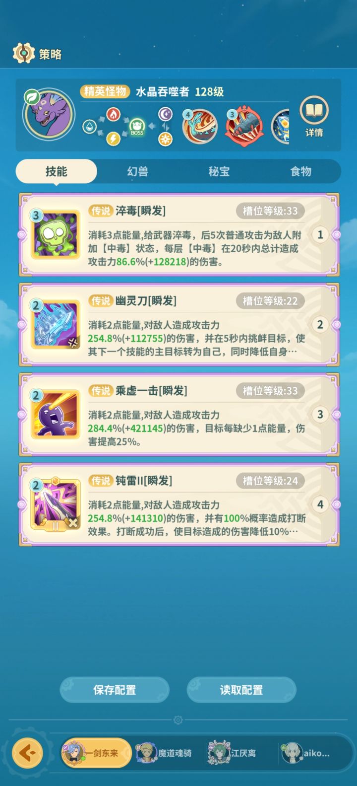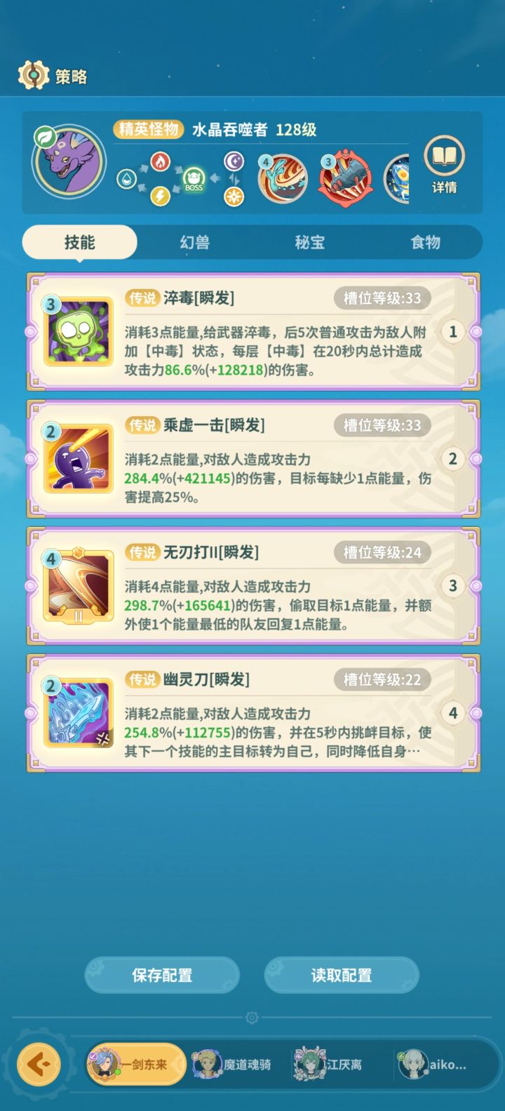 水晶大舌飞,1-4,后排带能量之源。锐眼鳍鱼,5-8,刺客巫师带能量之源烈毒伊拉,9-12,刺客完美打断。学者带能量之源。热情鳍鱼,13-16,学者带能量之源。最终boss没什么好说,治疗上加攻和单体技能拉住骑士,其他人输出即可,刺客打断一次。#云海之下 #云海之下组队冲榜