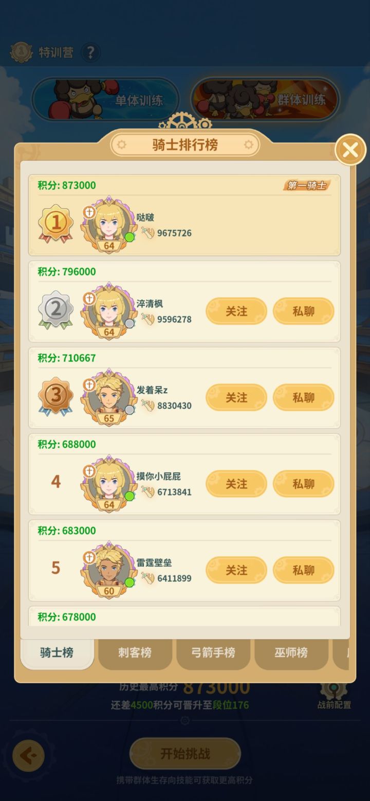 氪金篇狩猎季30天目前第5天第一天等级23级(满队4速)第二天等级32级晚上10点结算第三天等级39级第四天等级44级晚上10点结算第一天礼包买完1200元左右。重点购买成长礼包,双卡一证,没有什么特别活动,邀请码四个人组队一定要1填2,2填3,3填4,4填1 确保都能吃到一个氪金关卡的保底,其余三个位置找路人即可18级正式开启提升战力之路。然后就一直推图就可以了这里推荐阵容骑士