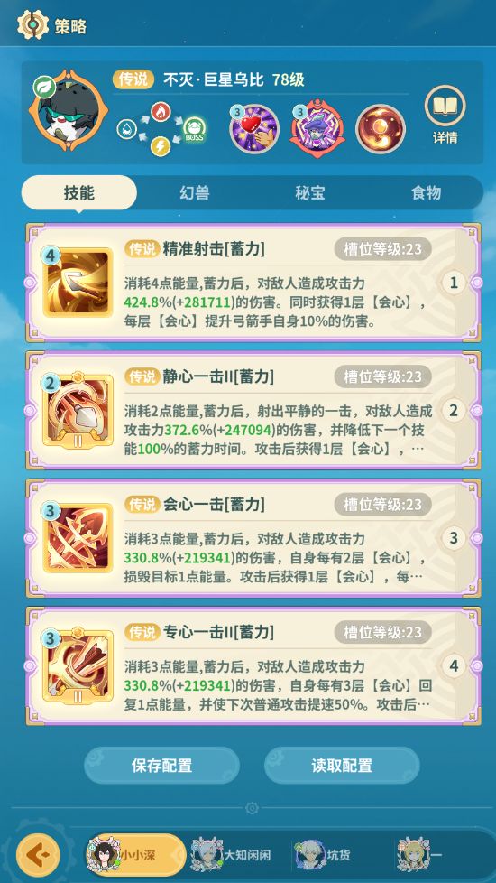 从阿卡塔绿洲开始 记录一下自己队的技能队伍配置: 骑 巫 法 学越级:正常越3 极限越4想来抄作业 没找到 自己做一份记录从150才开始 前面稀有boss没记*肯定不是唯一解,只是正好我们用这套过了#云海之下组队冲榜 图1-4 快拳乌比(小怪)图5-8 诅咒姆拉比(160稀有)图9-12 巨嘴乌鸦图13-16 火爆阿力