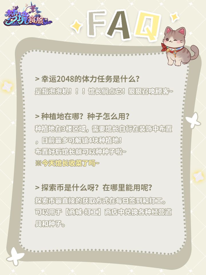 馆长们在经营的途中有没有什么问题呢?经营疑问持续收集中!#梦境食旅 #梦境食旅公测