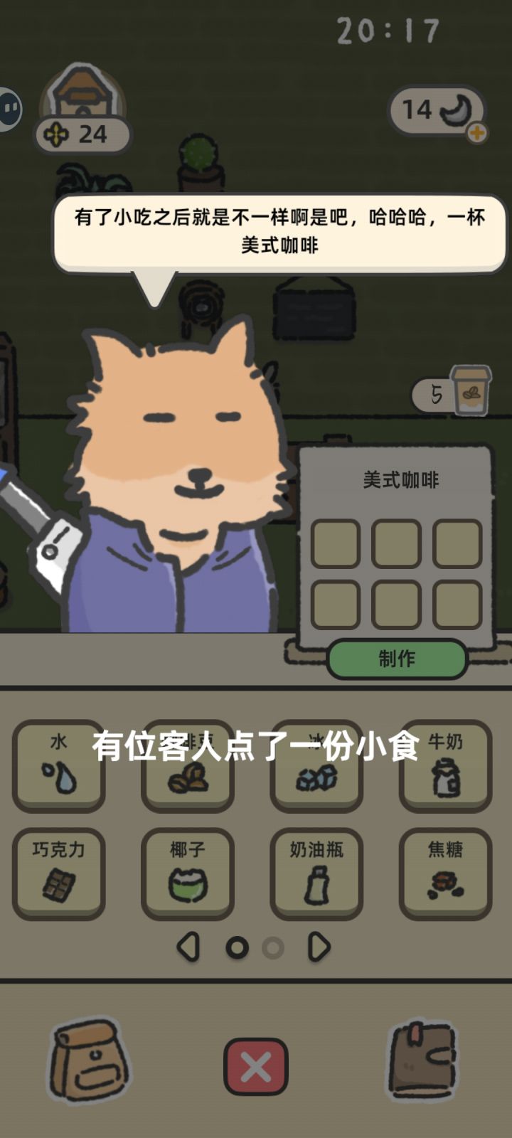 营业的时候第二个客人来了个黄油冰拿铁,我就咖啡豆➕黄油➕牛奶➕冰做给他,结果提示我配方不匹配,我就懵了,做正常黄油拿铁给他,就说我做错了,然后我寻思卡着了?退出游戏重进,然后这一次的次数就浪费了,消耗了一次就做了一个客人的饮品,自闭了