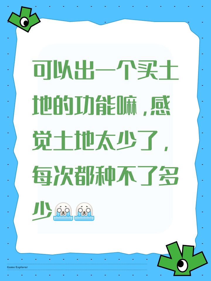 可以出一个买土地的功能嘛,感觉土地太少了,每次都种不了多少