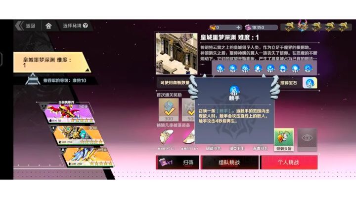 打秘境之前可以先去扫荡二级强化本,不扫荡的话军阶第一天是不够开三级本的,扫荡过后全身装备+10,攻强主词条的装备可以+20,然后用扫荡的装备羁绊尽量去凑面板,最好是全力突进,因为现在主C是SSR面板转化伤害的收益高了很多,堆面板的收益大于羁绊的固定伤害,天赋方面除了自选异能还点了下面的撞墙定身时间提高和闪避充能,都是随机前几关的BOSS也很简单大耳狐隐身看脚下波纹,如果他突然显形就是要搞你了人