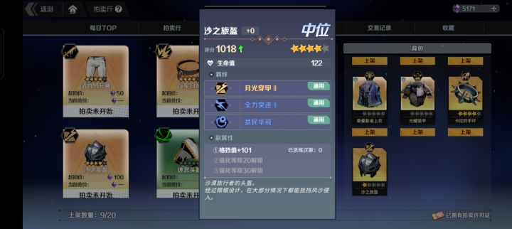恭喜Top1 水小遨有进账了。成功卖出:3100紫钻上位装备集体开始发力了,贫民华戒词条也开始被大家需求。能量腿甲,带有幸运星与贫民华戒,而且副属性也初始非常优秀沙之旅盔 词条月蚀,已其优异的词条脱颖而出[25%几率无视对方50%防御,在高难度副本非常有用]3个优质沙之旅盔分别占据了2,3,5名