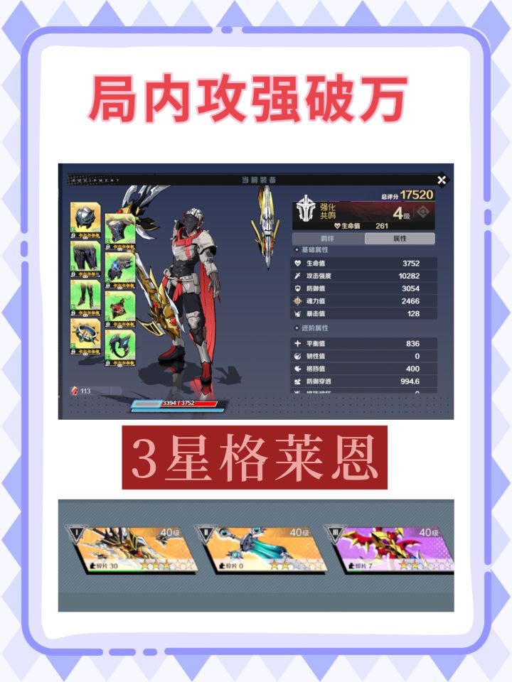 ✨近战肉搏没实装 还能再高一点✨随手截的,仅3星格莱恩 魂石无增攻➣浅纪念一下