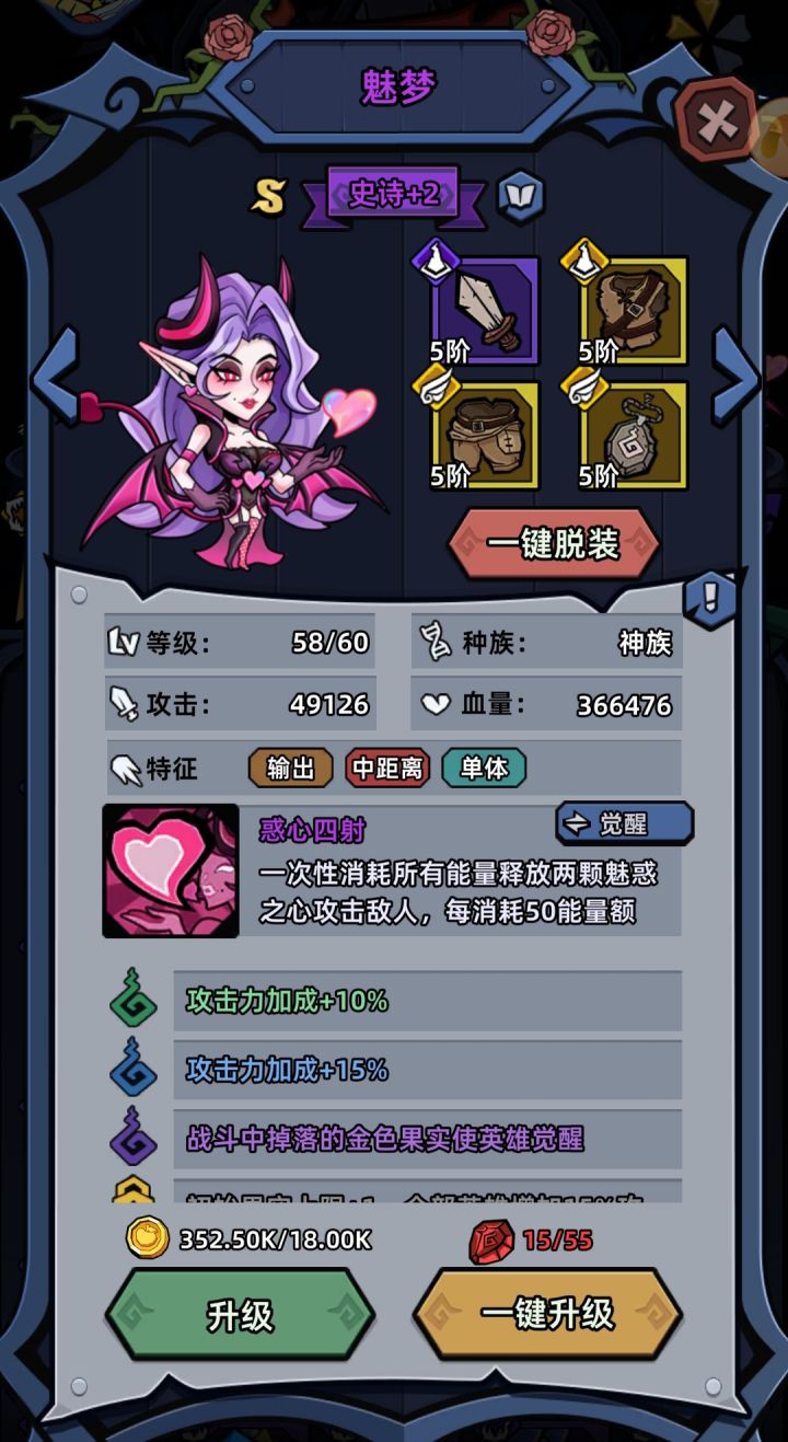 新人出道阵容:魅魔,雅典娜,冰女,骑士,蝙蝠。阵容解析:本次五一活动赠送了魅魔本体一只,鉴于数值爆表的强度,紫二就能用很久,另外四只全非s级,好升好养,种族分别为三神两人,魅魔最需要的回能速度,再加上五个角色升黄全攻击加成。魅魔主c,冰女蝙蝠副c,两个可兼顾全队也可互相配合的大肉。玩法解析:开局放置魅魔,站场到四无压力,有种数值爆炸的美,二位放雅典娜,提前刷盾,反正怪线无压力。三位骑士四位冰女