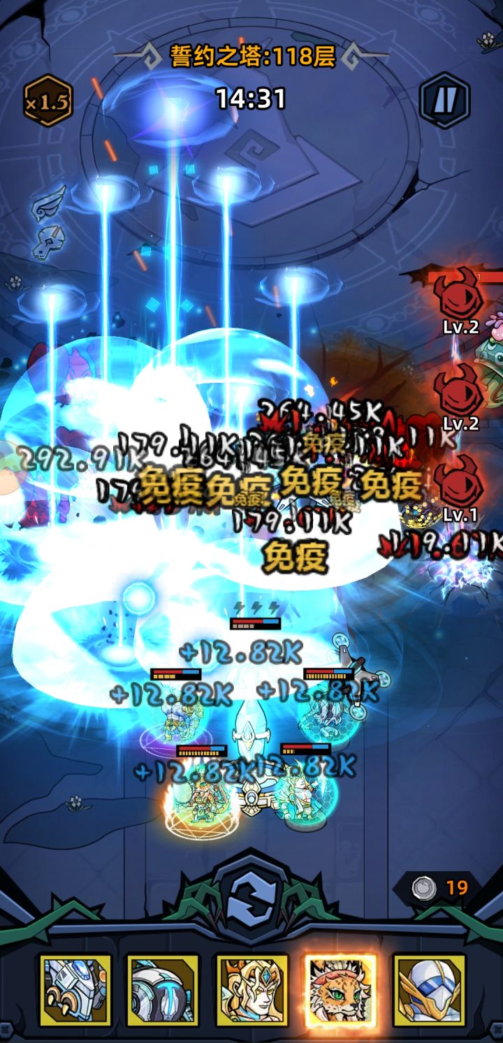 爬塔遇到免疫,飞机全是1血,只能用天劫去撑场子,格子也没有,坚持了17分钟