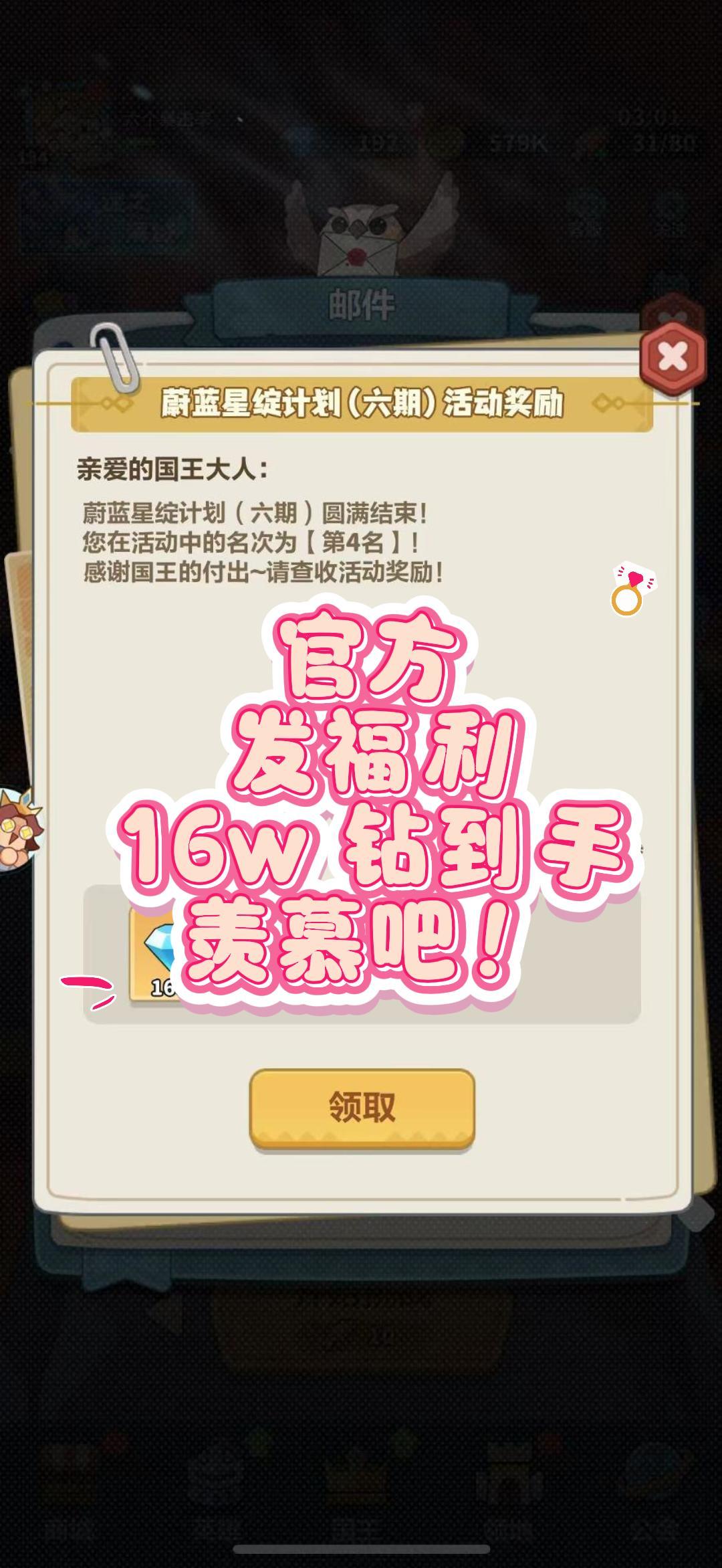 官方活动,16W钻石到手!羡慕吧哈哈!