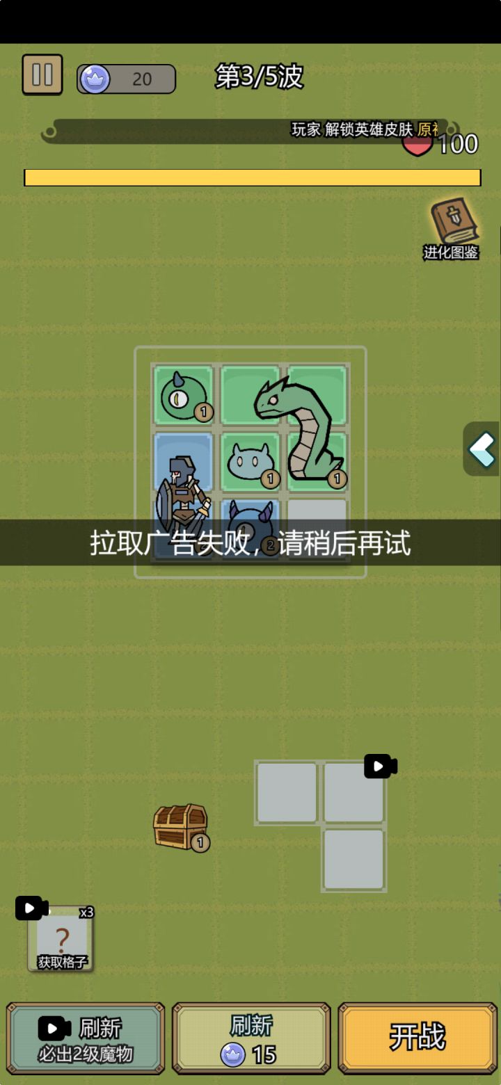 看完广告,3个的不能用,其实可以改成放上去,减少一格(建议)