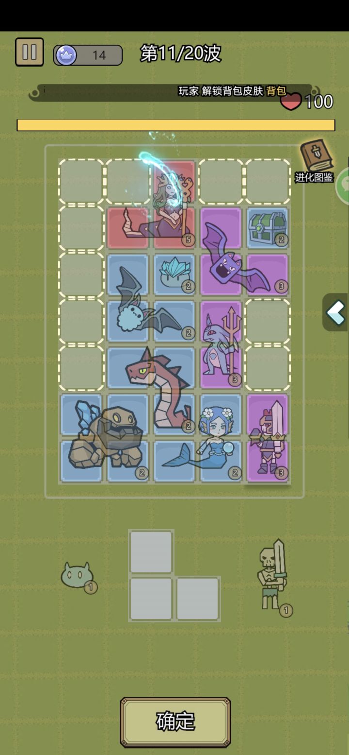 上了一个骷髅,攻击一个单位,伤害是500.600.700.800.1a,然后又变成500.600.700.800.1a,每攻击五次骷髅的增伤就重置了#魔物背包系统