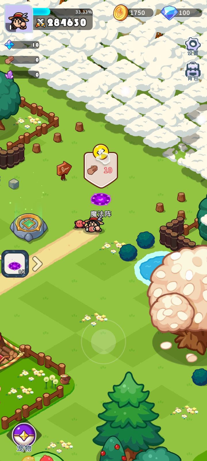 跟个提示杀几个小怪,然后砍完木头,我把木头用在了传送阵和训练营的解锁上了,魔法阵没木头,解不开地图了。,话说,那个木头怎么不刷新啊