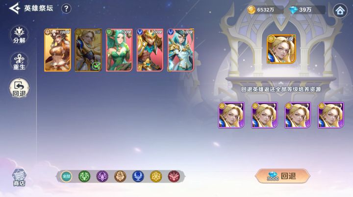 玩家问:我不小心把英雄合成了!能够分解成两个五星吗?策划回:在英雄祭坛选英雄回退,花钻石回退就行了玩家问:为什么无法穿戴星痕装备,已经达到开启的关卡策划回复:关卡6-18,开服第8天后,满足这两个条件开启英雄星痕#攻略
