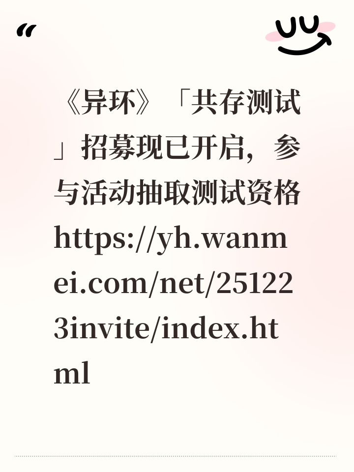 《异环》「共存测试」招募现已开启,参与活动抽取测试资格https://yh.wanmei.com/net/251223invite/index.html?inviteCode=WQZLHEBJY7求中