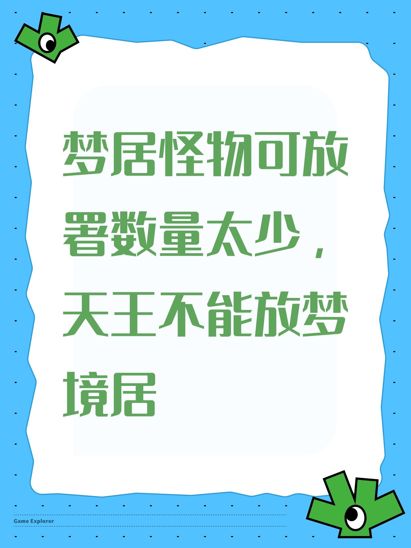 梦居怪物可放署数量太少,天王不能放梦境居
