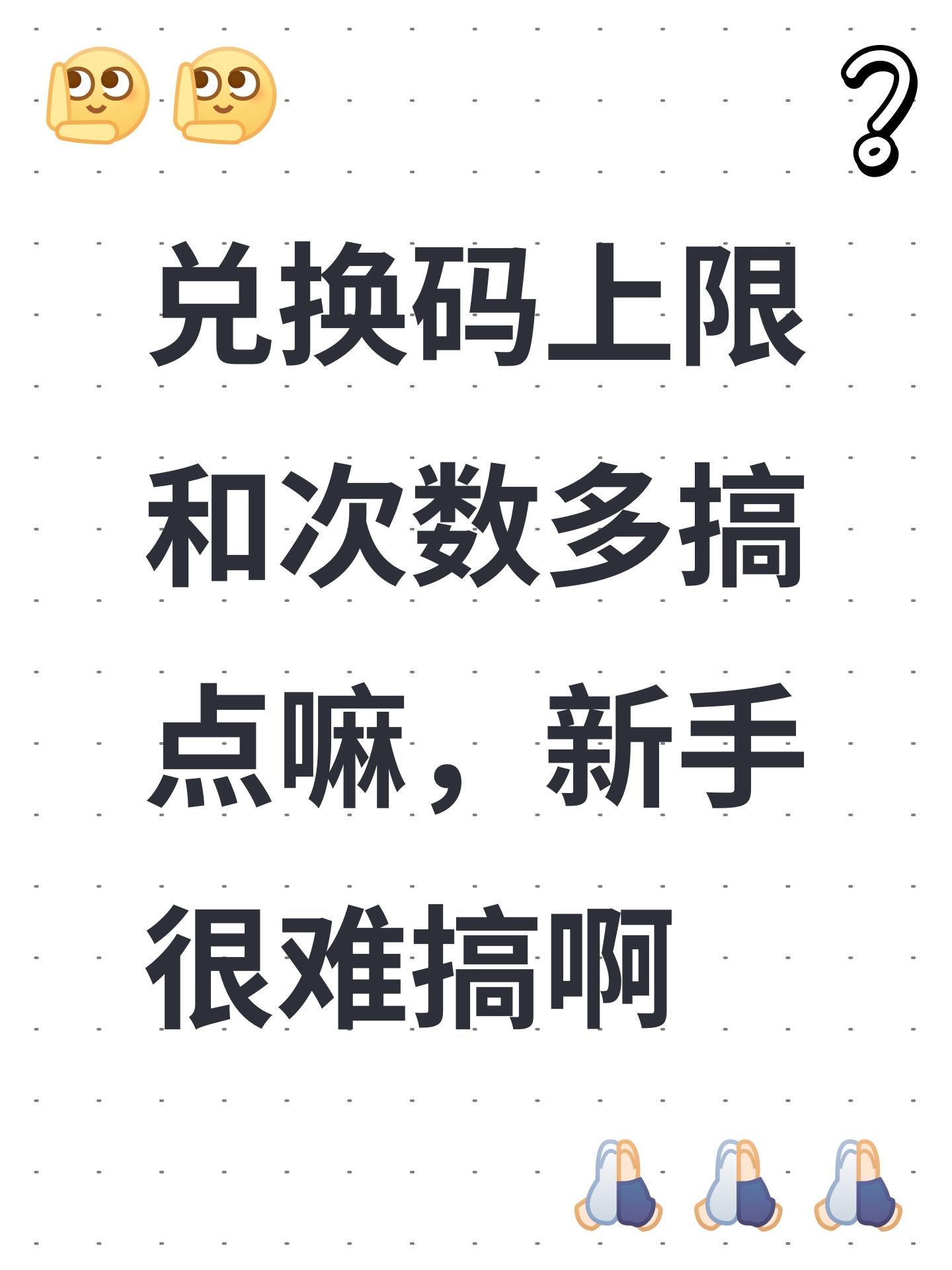 兑换码上限和次数多搞点嘛,新手很难搞啊