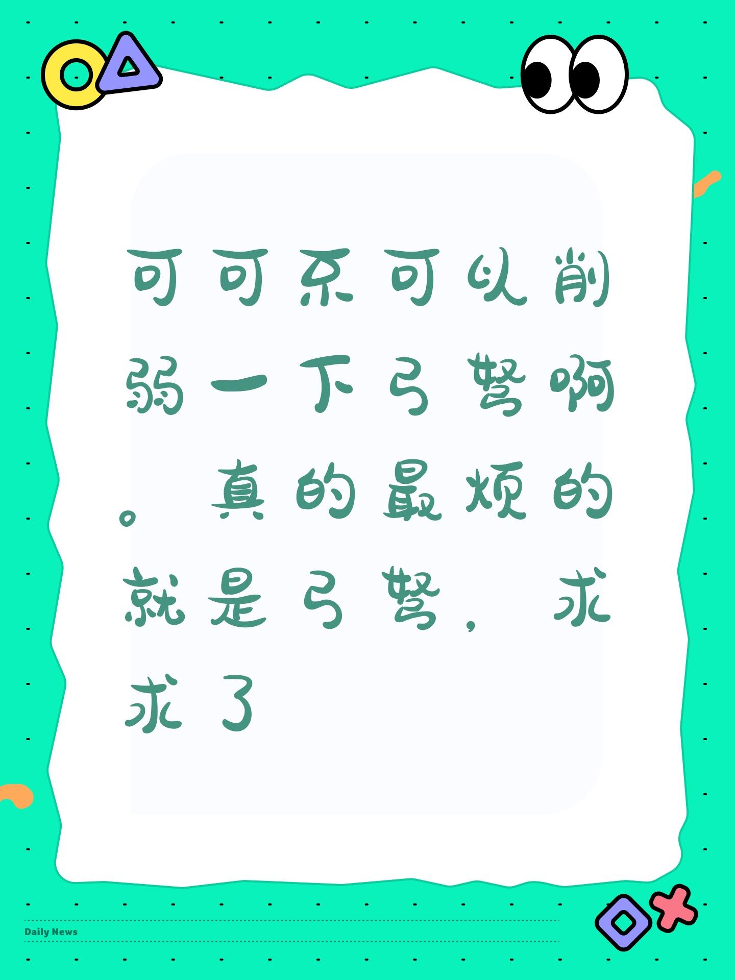 可不可以削弱一下弓弩啊。真的最烦的就是弓弩,求求了