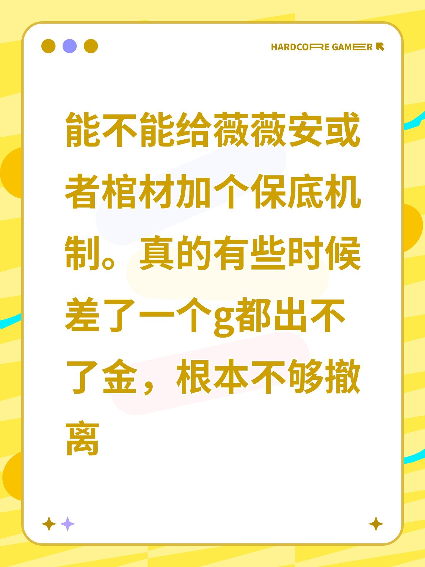 能不能给薇薇安或者棺材加个保底机制。真的有些时候差了一个g都出不了金,根本不够撤离