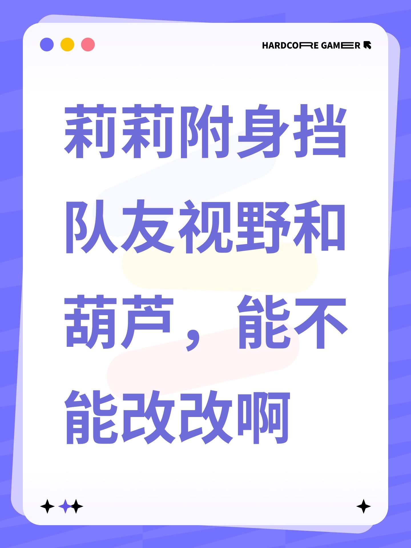 莉莉附身挡队友视野和葫芦,能不能改改啊