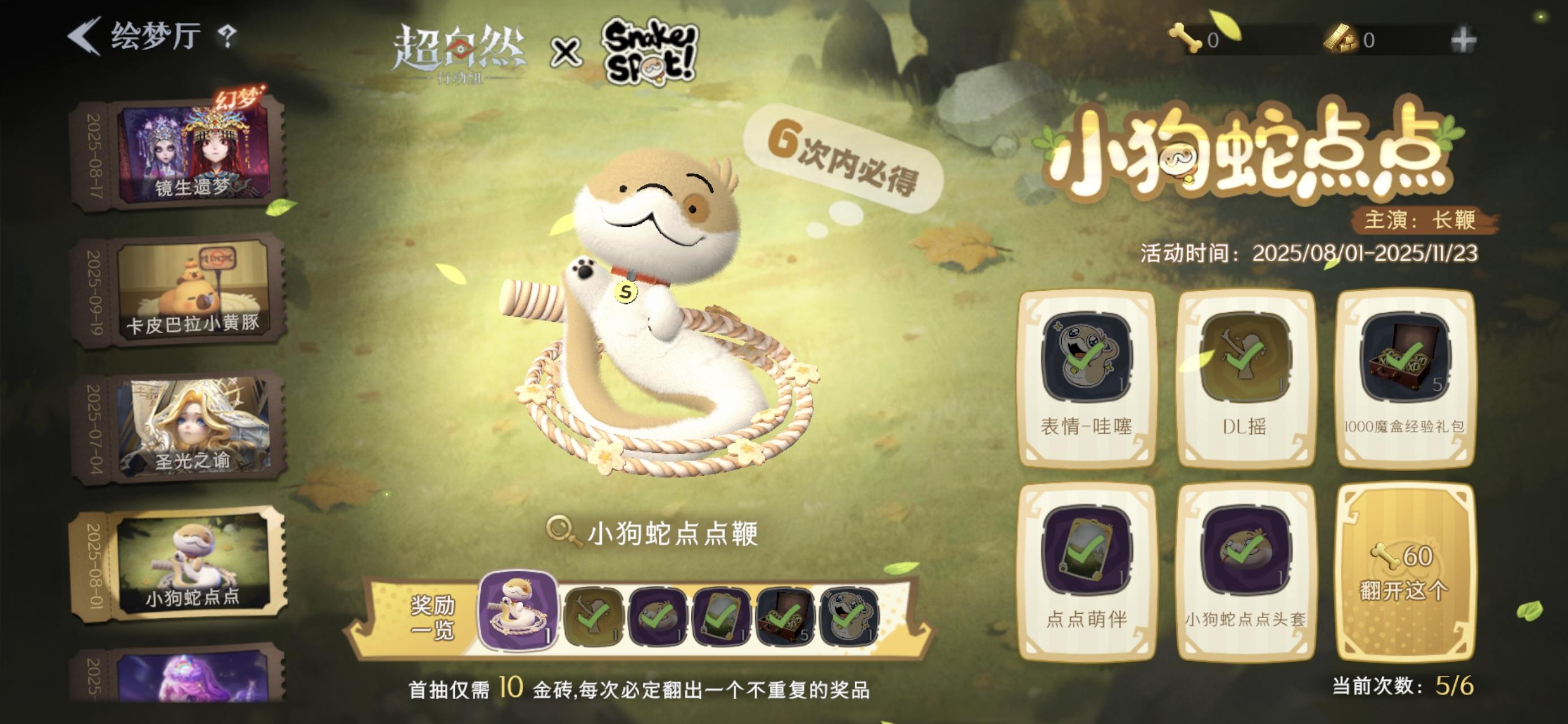能能不能送点金砖呀?我小狗蛇就剩最后一抽了。