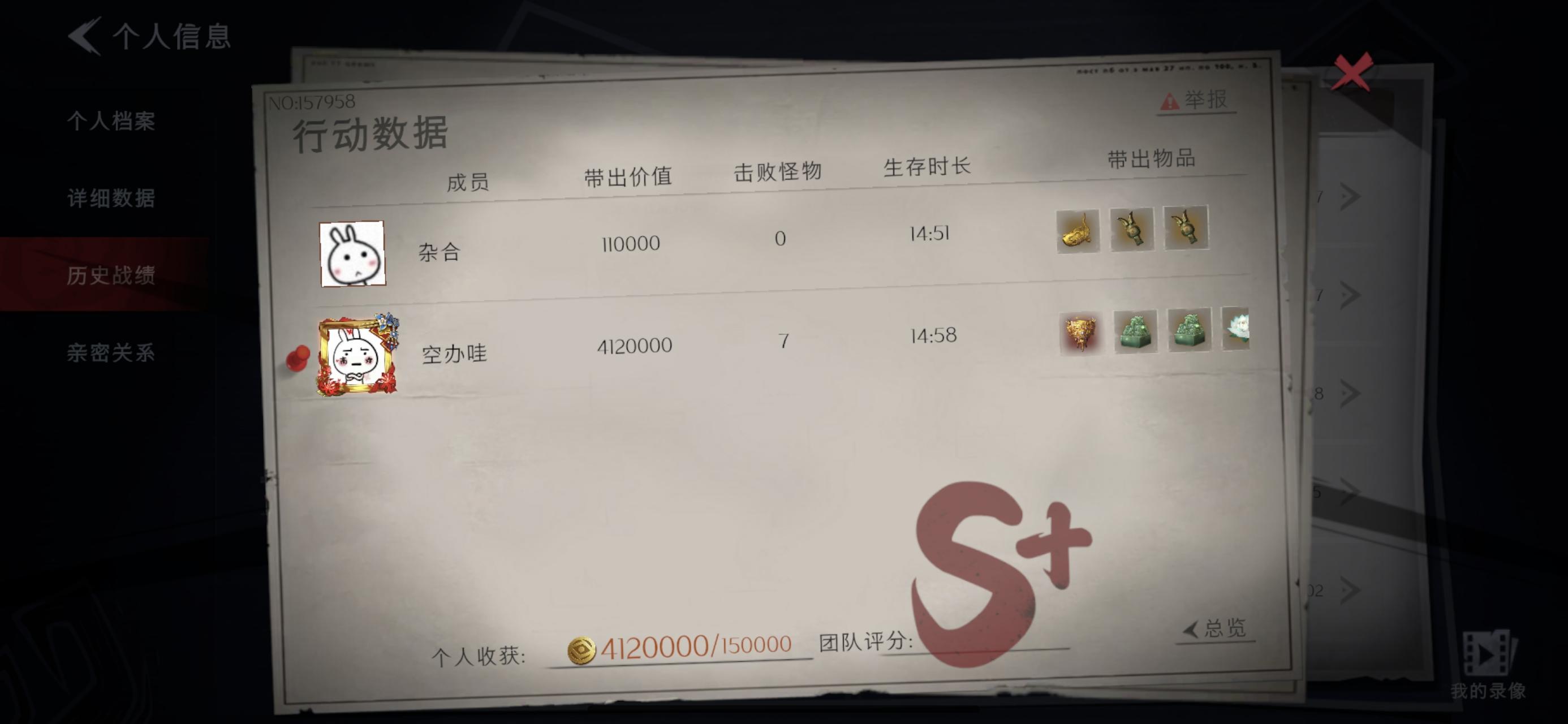 超自然摸金赛昆仑噩梦双人赛道(114.8w撤离) 伏辜:82w 失乐Petri:32.8w #超自然摸金赛
