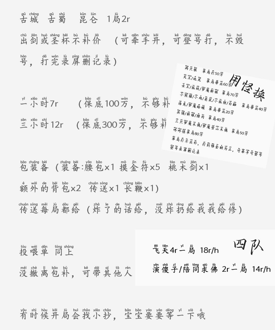 卖怪0.8r一包狼2r一包白鼬(其他怪也卖)接古城单0.5一把可私