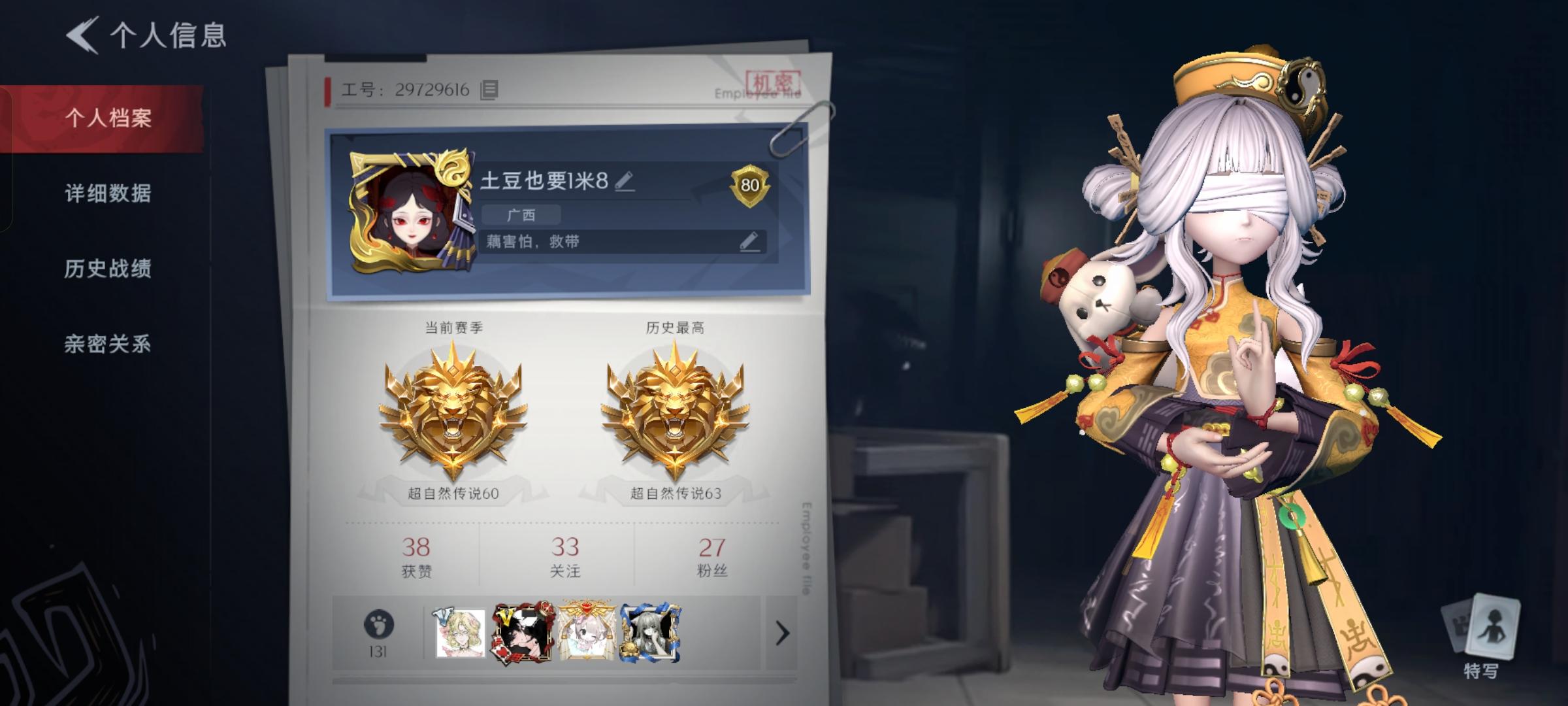 无所谓年龄性别,比我小的当带弟弟妹妹玩,跟我岁数差不多的当朋友处。楼主23岁大学毕业老登,性格好会整活。之前玩过致命公司和这个游戏的内测服,最近刚下回来。目前还是个菜比#超自然行动组