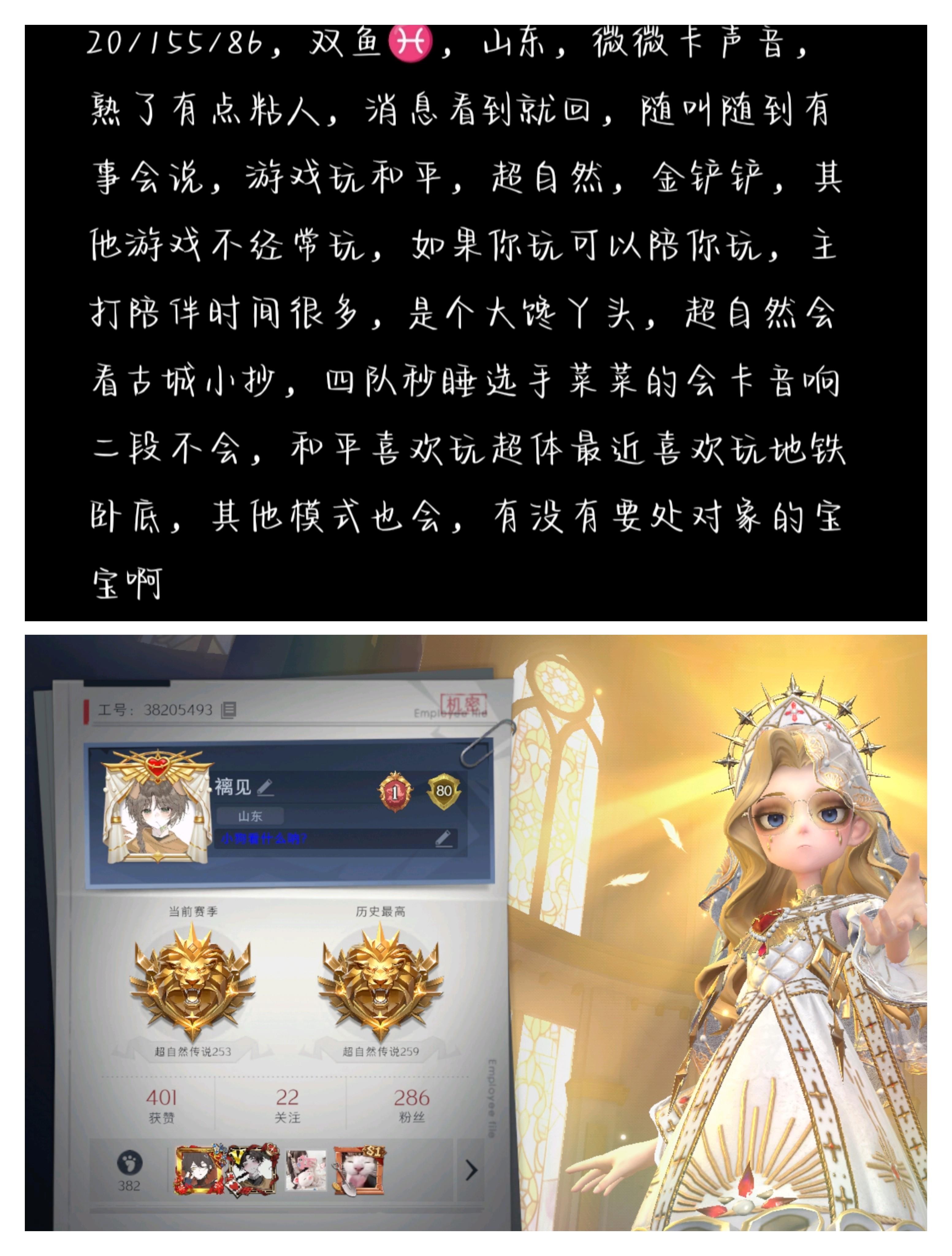 求靠山 四队大手子 陪玩婉拒了哈 可以给你起装备 我比较菜 四队幼年飞天 摸金我也不太会 但是可以找人代肝 我平时爱玩抽象 情绪价值给的好 不压力你 你也不要压力我 可开麦 ##超自然行动组 熟了包兔宝魔盒 我占有欲有点强 希望是独生兔 可以的加我留言 不要三分钟热度的