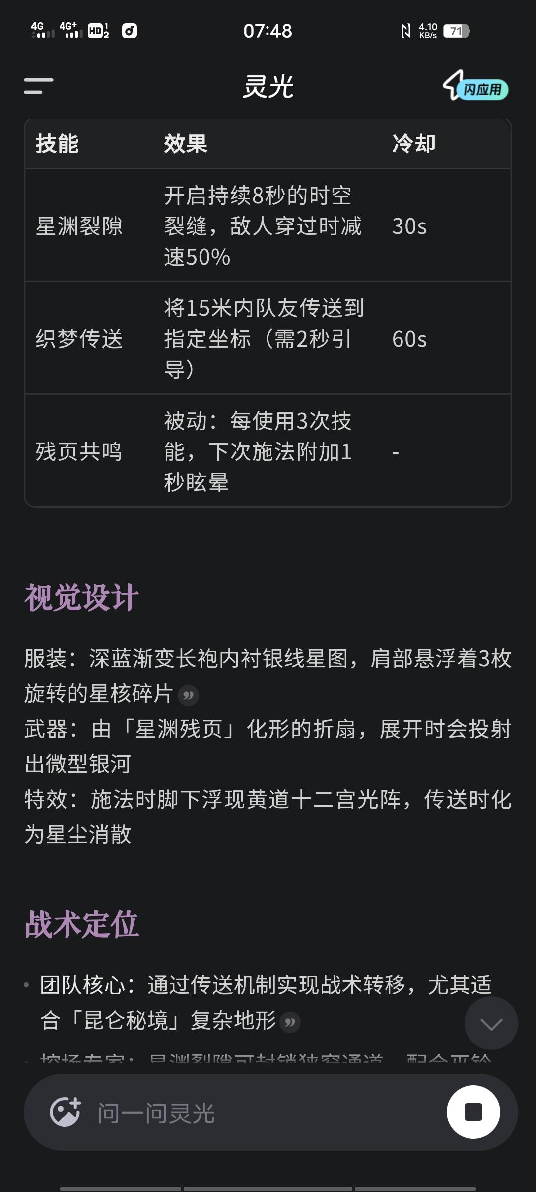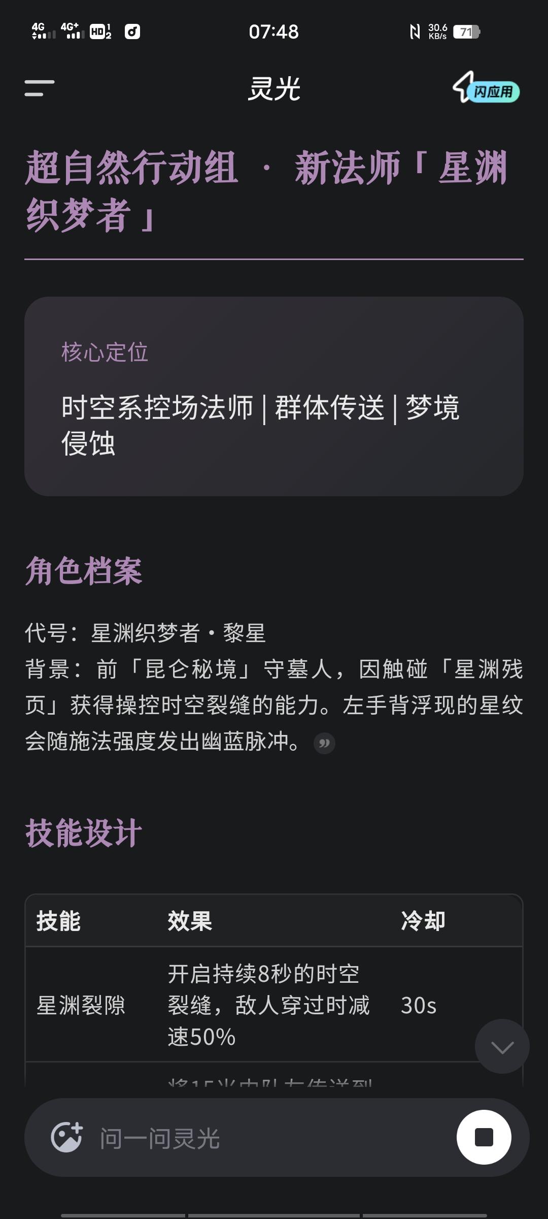 她受到雇佣前往遗迹里寻找一具遗骸,没人知道她的姓氏,只在她偶尔失神时,听见她对着停摆的钟表喃喃自语——那是祖母教她的、灵界通用的“晚安”,也是她藏在“莉奥拉”这个名字背后的,与魂灵共生的秘密。🔷灵魂摆渡(医疗) CD:120秒[能够引领那些迷茫的灵魂魂归故里!]🔺莉奥拉将切换灵体形态,肉身受到攻击技能中断,将没有身体的魂魄(除精绝女王,其他都可以)20秒仪式以后找到棺复活。[可自用]🔷灵魂
