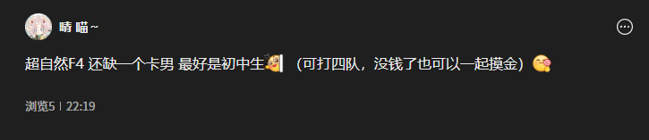 有没有老师要共号哇 我想体验皮肤 不会毁号的 老师可以放心 要没押金的 长期共是女孩子 不会开挂 遇到您的好友会说不是原号主 手脚绝对干净 不会毁号 等不共的时候 我可以保证您的崽崽绝对是完完整整的回到您手 我比较菜 不嫌弃的老师可以共[做不完]