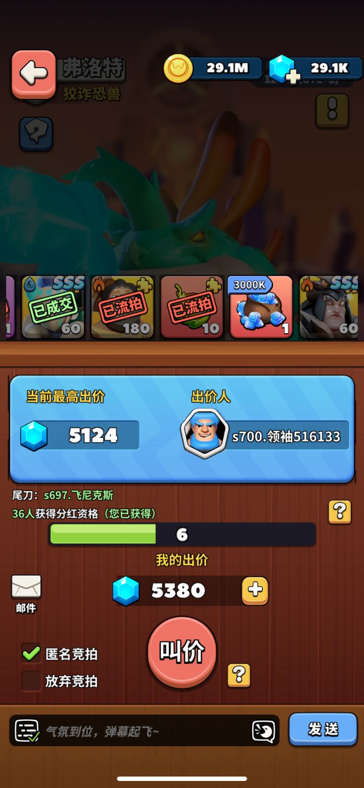 区服:S691角色名:缥缈灬喜来登游戏ID:TdBv4kuwyZ2GCpYS-69100536144攻略内容:排黑板!!!画重点!!!新区新手最需要注意的点,拍卖,不懂的瞎拍,浪费砖石,我现在最后悔的就是没有抓住开区时经验没人拍的时候3000经验没有拍。特别注意,如果你是零氪,前期拍卖只拍底价经验,其他全部不要拍,如果你是月卡党可以适当拍点其他资源,重氪大佬随意。后期觉醒后你会感谢我的,后期