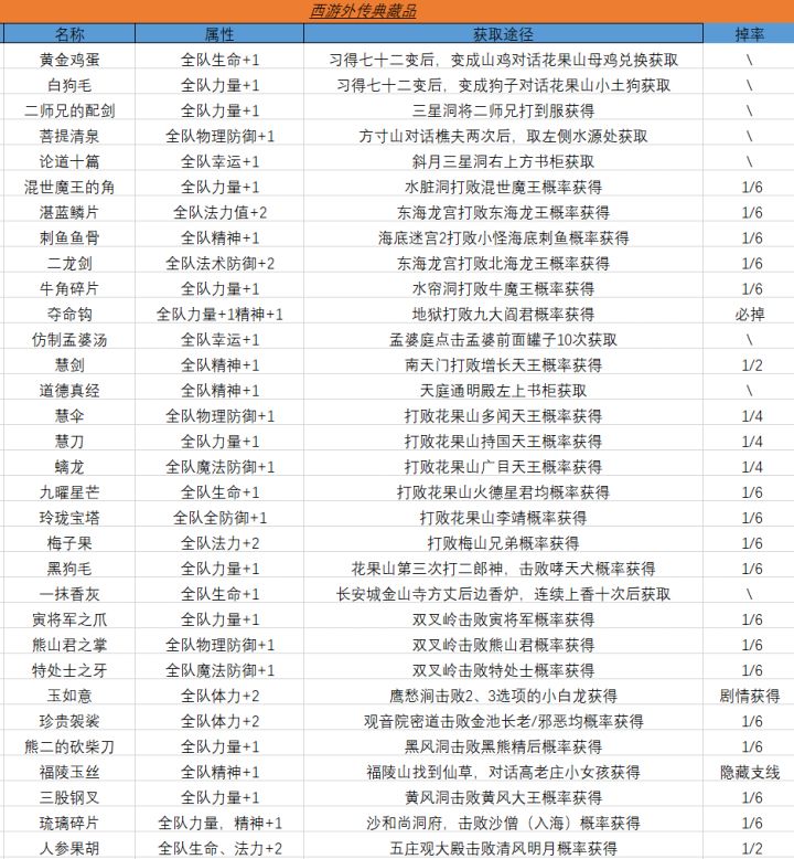 西游外传1.63收藏品获取一览