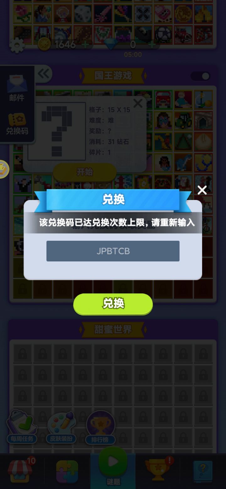 兑换码用不了。。。