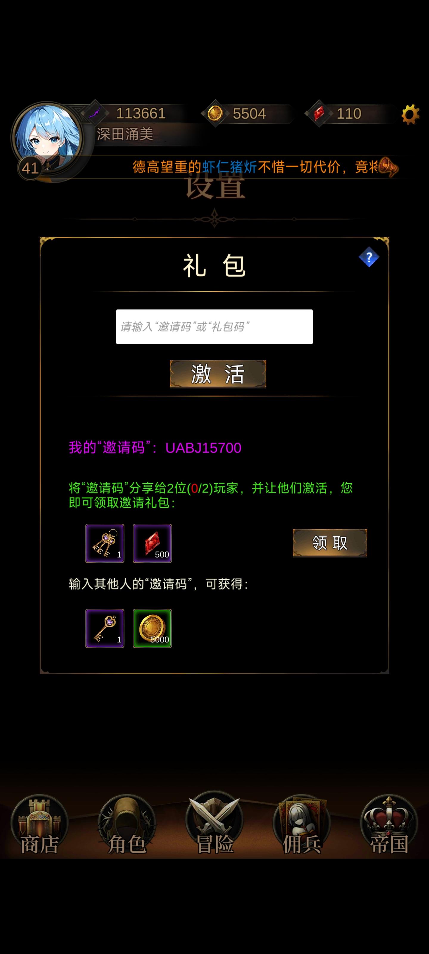 新区第二天就军神,邀请码:UADQ12702 有没大佬帮忙或者互填