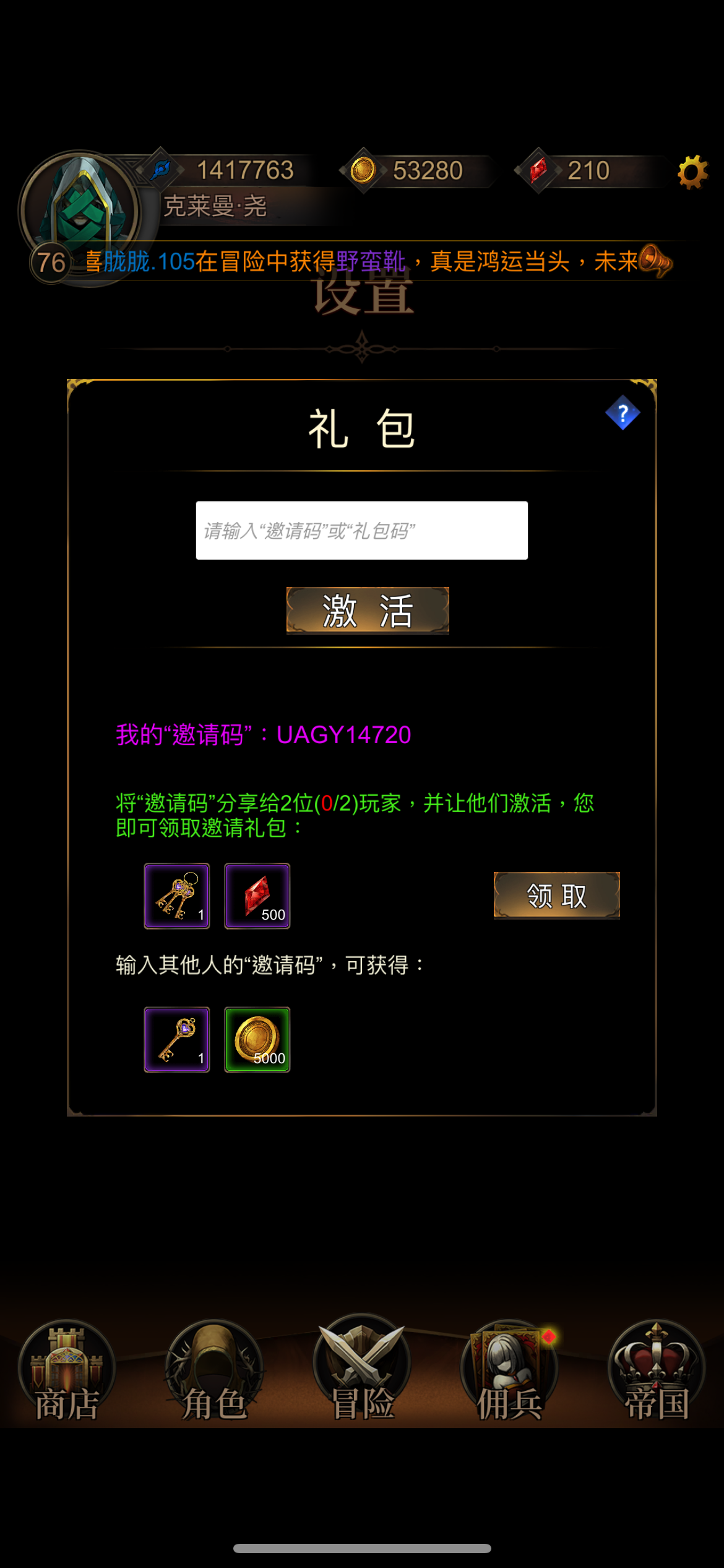 邀请码/礼包码(输入不影响自身邀请奖励)