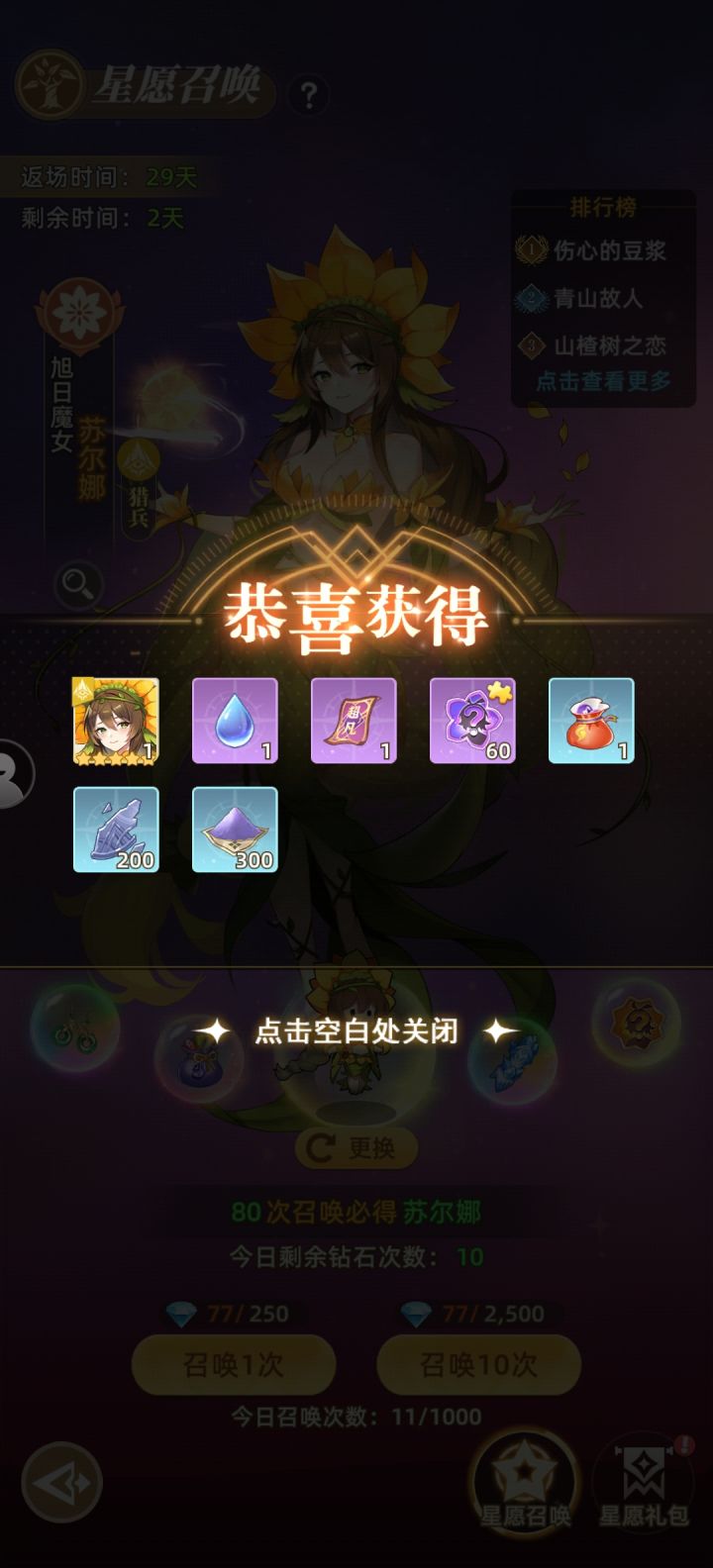 第七天了星愿抽奖开启了新手第五天的时候就应该攒钻石了,这个人获得光暗核心的最好时机,第一周是雷神和向日葵每个属性最好都养一下四个技能,不要扔,因为失恋之塔爬过400层之后,有每个属性的专属塔#万灵幻想游戏攻略