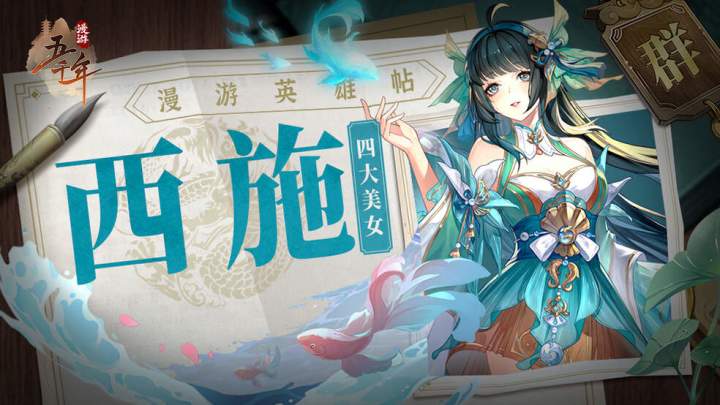 主公们好!今天《漫游五千年》开启预下载啦!明天10:00点正式开启公测哦!今天给大家介绍《漫游五千年》中的英雄是中国古代四大美女之一——西施!|| 西施(生卒年不详), 姓施名夷光,一作先施,又称西子生长于浙江诸暨苎萝村(今诸暨市城南浣纱村),中国春秋末期美女。西施出身贫寒,常浣纱于溪,生有姿色,秀媚出众。越国战败后,被迫向吴国称臣求和。越王勾践遍选国内美女献给吴王夫差,天生丽质的西施也是
